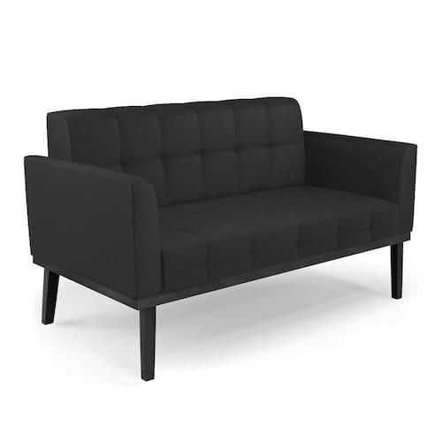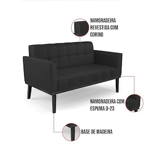 Você gosta de colecionar vários momentos memoráveis com sua família e amigos? Que tal recebê-los, com móveis de altíssima qualidade que só a D'Rossi tem? O Sofá Namoradeira Elisa é adequado para você! Seu design retrô é a grande tendência do momento. Pode ser utilizado em diversos espaços da casa, em salas, hall de entrada, quartos, cozinhas, varanda, sacada, escritório, dentre outros. Contém as seguintes características: A estrutura é feita de madeira de Eucalipto 100% de reflorestamento, e a Base de Madeira Preto, além de ser resistente e durável, suporta em média até 120 kg. Assento, encosto e braços, contém enchimento de espuma D-23 e é estofada em tecido Corino, no tom Preto, que oferece muito conforto e resistência ao sentar, com aquela sensação de maciez e aconchego. Possui também, detalhes de costura no encosto e assento, resultando em um acabamento impecável, conferindo muito mais valor e elegância ao seu espaço. Para complementar a decoração com esse lindo Sofá Namoradeira, a dica é utilizar mantas, almofadas ou vasinho de flor. E pronto, seu cantinho estará perfeito para descansar e relaxar! Aqui, você encontra várias opções, para que seus amigos e familiares se sintam acolhidos. Garanta já seu Sofá Namoradeira.