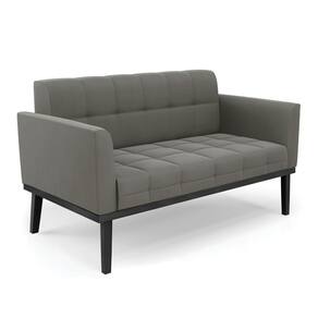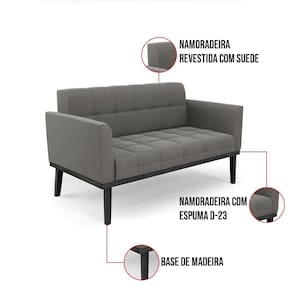 Sofá Namoradeira 2 Lugares Base De Madeira Preto Elisa Suede D03 - D'rossi Cor Grafite