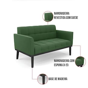 Sofá Namoradeira 2 Lugares Base De Madeira Preto Elisa Suede D03 - D'rossi Cor Verde