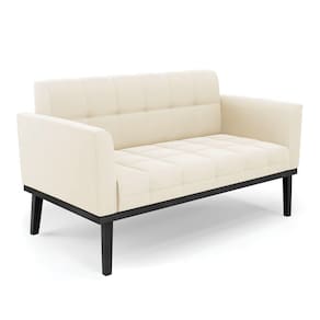 Sofá Namoradeira 2 Lugares Base De Madeira Preto Elisa Veludo D03 - D'rossi Cor Bege