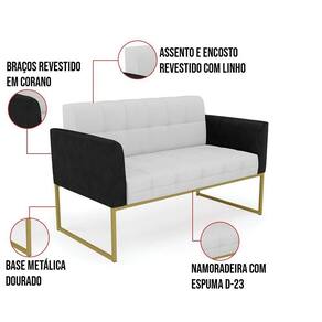 Você gosta de colecionar vários momentos memoráveis com sua família e amigos? Que tal recebê-los, com móveis de altíssima qualidade que só a D'Rossi tem? O Sofá Namoradeira Elisa é adequado para você! Seu design retrô é a grande tendência do momento. Pode ser utilizado em diversos espaços da casa, em salas, hall de entrada, quartos, cozinhas, varanda, sacada, escritório, dentre outros. Contém as seguintes características: A estrutura é feita de madeira de Eucalipto 100% de reflorestamento, e a Base de Madeira Preto, além de ser resistente e durável, suporta em média até 120 kg. Assento, encosto e braços, contém enchimento de espuma D-23 e é estofada em tecido Corano Preto com Linho, no tom Cinza, que oferece muito conforto e resistência ao sentar, com aquela sensação de maciez e aconchego. Possui também, detalhes de costura no encosto e assento, resultando em um acabamento impecável, conferindo muito mais valor e elegância ao seu espaço. Para complementar a decoração com esse lindo Sofá Namoradeira, a dica é utilizar mantas, almofadas ou vasinho de flor. E pronto, seu cantinho estará perfeito para descansar e relaxar! Aqui, você encontra várias opções, para que seus amigos e familiares se sintam acolhidos. Garanta já seu Sofá Namoradeira.