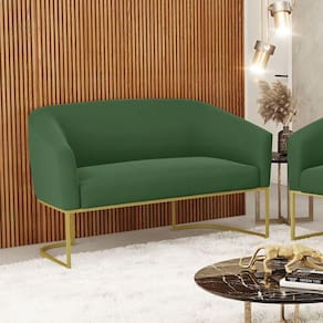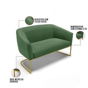 Sofá Namoradeira 2 Lugares Base Industrial Dourado Stella Suede D03 - D'rossi Cor Verde