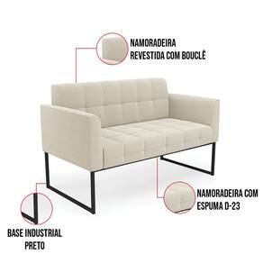 Sofá Namoradeira 2 Lugares Industrial Preto Elisa Bouclê D03 - D`Rossi - Bege