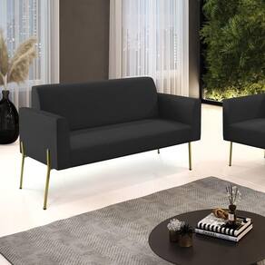 Todo mundo gosta de um ambiente bem decorado, e se for novidade melhor ainda não é mesmo? A D'Rossi, além de entregar beleza, qualidade e confiança aos clientes, ela dispõe das melhores opções em produtos, disponíveis no mercado! Portanto, se você quer um produto sofisticado, opte pelo Sofá Namoradeira 2 Lugares. Ele possui um design lindo e sofisticado, com pés de Ferro Lateral Dourado e revestimento em tecido Corino Preto, que harmonizam com qualquer ambiente. Esta mobília fica perfeita na sala de estar, recepções, mesa de jantar ou qualquer outro espaço que você queira decorar com estilo e bom gosto. Ela contém uma estrutura em madeira de reflorestamento eucalipto, que garante a resistência e a sustentabilidade do produto. Ela suporta até 120 kg de peso, podendo ser utilizada por pessoas de diferentes biotipos. Ela tem um acabamento reforçado e espuma de qualidade D-23, garantindo flexibilidade e conforto ao usuário. O Sofá Namoradeira Marisa é um produto de alta qualidade, beleza e funcionalidade. Ele é fácil de transportar, pois tem um peso leve e um tamanho compacto. O Sofá Namoradeira 2 Lugares Marisa é ideal, para dar aquele realce que seu ambiente precisa. Tenho certeza que esse móvel é a melhor compra que você irá fazer. Garanta já seu Sofá Namoradeira Marisa e se acomode da melhor maneira possível!Dimensões do Sofá Namoradeira: Altura total: 81 cm Largura total: 114 cm Profundidade total: 64 cm Altura do encosto: 36 cm Largura do assento: 96 cm Profundidade do assento: 48 cm Altura do chão ao assento: 45 cm Espessura do assento: 18 cm Tamanho dos pés: 30 cm Espessura do braço: 9 cm Peso: 21 kg Especificações do Produto Estrutura: Madeira Eucalipto Espuma: D-23 Tecido: Corino Tipo de pés: Pés de Ferro Dourado Peso suportado: Até 120 Kg Garantia: 90 dias contra defeito de fabricação Montagem: O produto vai montado, apenas parafusar a base Instruções de limpeza: Utilizar um pano limpo e levemente úmido Você irá receber: 01 Sofá Namoradeira - Entregue em: 01 Volume