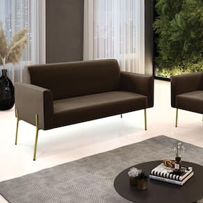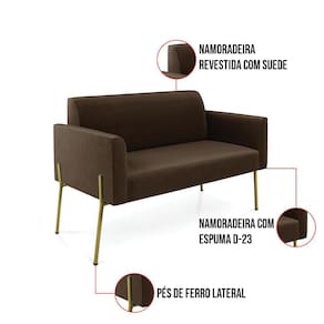 Todo mundo gosta de um ambiente bem decorado, e se for novidade melhor ainda não é mesmo? A D'Rossi, além de entregar beleza, qualidade e confiança aos clientes, ela dispõe das melhores opções em produtos, disponíveis no mercado! Portanto, se você quer um produto sofisticado, opte pelo Sofá Namoradeira 2 Lugares. Ele possui um design lindo e sofisticado, com pés de Ferro Lateral Dourado e revestimento em tecido Suede Marrom, que harmonizam com qualquer ambiente. Esta mobília fica perfeita na sala de estar, recepções, mesa de jantar ou qualquer outro espaço que você queira decorar com estilo e bom gosto. Ela contém uma estrutura em madeira de reflorestamento eucalipto, que garante a resistência e a sustentabilidade do produto. Ela suporta até 120 kg de peso, podendo ser utilizada por pessoas de diferentes biotipos. Ela tem um acabamento reforçado e espuma de qualidade D-23, garantindo flexibilidade e conforto ao usuário. O Sofá Namoradeira Marisa é um produto de alta qualidade, beleza e funcionalidade. Ele é fácil de transportar, pois tem um peso leve e um tamanho compacto. O Sofá Namoradeira 2 Lugares Marisa é ideal, para dar aquele realce que seu ambiente precisa. Tenho certeza que esse móvel é a melhor compra que você irá fazer. Garanta já seu Sofá Namoradeira Marisa e se acomode da melhor maneira possível!