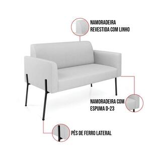 Todo mundo gosta de um ambiente bem decorado, e se for novidade melhor ainda não é mesmo? A D'Rossi, além de entregar beleza, qualidade e confiança aos clientes, ela dispõe das melhores opções em produtos, disponíveis no mercado! Portanto, se você quer um produto sofisticado, opte pelo Sofá Namoradeira 2 Lugares. Ele possui um design lindo e sofisticado, com pés de Ferro Lateral Preto e revestimento em tecido Linho Cinza, que harmonizam com qualquer ambiente. Esta mobília fica perfeita na sala de estar, recepções, mesa de jantar ou qualquer outro espaço que você queira decorar com estilo e bom gosto. Ela contém uma estrutura em madeira de reflorestamento eucalipto, que garante a resistência e a sustentabilidade do produto. Ela suporta até 120 kg de peso, podendo ser utilizada por pessoas de diferentes biotipos. Ela tem um acabamento reforçado e espuma de qualidade D-23, garantindo flexibilidade e conforto ao usuário. O Sofá Namoradeira Marisa é um produto de alta qualidade, beleza e funcionalidade. Ele é fácil de transportar, pois tem um peso leve e um tamanho compacto. O Sofá Namoradeira 2 Lugares Marisa é ideal, para dar aquele realce que seu ambiente precisa. Tenho certeza que esse móvel é a melhor compra que você irá fazer. Garanta já seu Sofá Namoradeira Marisa e se acomode da melhor maneira possível!