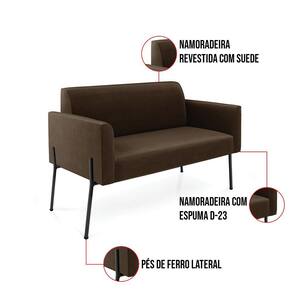 Sofá Namoradeira 2 Lugares Pé de Ferro Preto Marisa Suede D03 - D`Rossi - Marrom