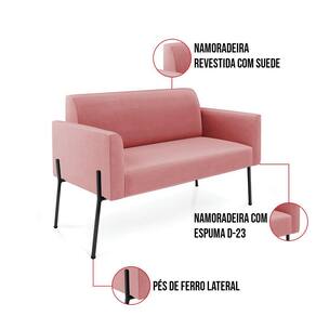 Sofá Namoradeira 2 Lugares Pé de Ferro Preto Marisa Suede Rosê D03 - D`Rossi