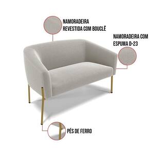 Sofá Namoradeira 2 Lugares Pé Ferro Dourado Stella Bouclê D03 - D'rossi Cor Cinza