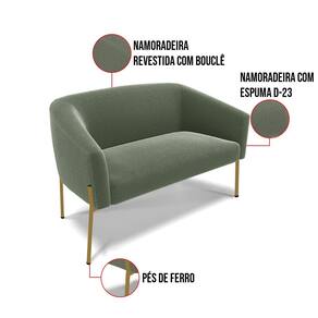 Sofá Namoradeira 2 Lugares Pé Ferro Dourado Stella Bouclê D03 - D`Rossi - Verde Limão
