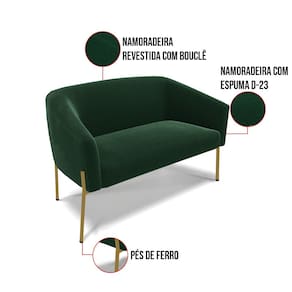 Tem novidades chegando por aqui! Olha só essa nossa inédita Namoradeira Stella Bouclê. Sim, as melhores opções em Namoradeira estão aqui! A Namoradeira Stella Bouclê é para todas as ocasiões, é ideal para você relaxar, assistir tv ou ler um livro, mantendo-o confortável ao longo do dia! Um estofado versátil, que foge do convencional pelo seu design e tecido luxuoso. Seu formato curvo, marcante e sofisticado, oferece conforto de forma excepcional, com aquela sensação de abraço, que deixa o coração quentinho! Desenvolvida com atenção aos detalhes, para atender todas suas expectativas e necessidades. Seu aspecto arredondado e anatômico, possibilita que a postura fique sempre alinhada, mantendo a coluna na posição correta. Ela dispõe de um acabamento impecável, revestida em Bouclê em tom Verde, um tecido maleável que além de ser muito bonito, é a grande tendência do momento, por ser uma lã mais refinada, quente, com toque suave e agradável, semelhante à textura natural da ovelha. Contém uma estrutura robusta, sua sustentação é dada pelos Pés de Ferro no tom Dourado, que garantem mais segurança e firmeza ao sentar-se. Já o enchimento é feito em espuma D-23 no encosto e assento, garantindo maior conforto ao usuário. Ah! Vale a pena lembrar que a Namoradeira Stella Bouclê, foi produzida em quantidades limitadas, para aqueles que procuram criar um visual diferenciado e exclusivo. Então, não deixe de aproveitar esse lançamento, hem! Leve a sua agora mesmo.