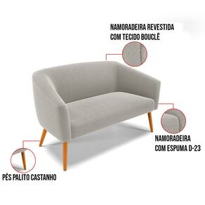 Tem novidades chegando por aqui! Olha só essa nossa inédita Namoradeira Stella Bouclê. Sim, as melhores opções em Namoradeira estão aqui! A Namoradeira Stella Bouclê é para todas as ocasiões, é ideal para você relaxar, assistir tv ou ler um livro, mantendo-o confortável ao longo do dia! Um estofado versátil, que foge do convencional pelo seu design e tecido luxuoso. Seu formato curvo, marcante e sofisticado, oferece conforto de forma excepcional, com aquela sensação de abraço, que deixa o coração quentinho! Desenvolvida com atenção aos detalhes, para atender todas suas expectativas e necessidades. Seu aspecto arredondado e anatômico, possibilita que a postura fique sempre alinhada, mantendo a coluna na posição correta. Ela dispõe de um acabamento impecável, revestida em Bouclê em tom Cinza, um tecido maleável que além de ser muito bonito, é a grande tendência do momento, por ser uma lã mais refinada, quente, com toque suave e agradável, semelhante à textura natural da ovelha. Contém uma estrutura robusta, sua sustentação é dada pelos Pés Palito no tom Castanho, que garantem mais segurança e firmeza ao sentar-se. Já o enchimento é feito em espuma D-23 no encosto e assento, garantindo maior conforto ao usuário. Ah! Vale a pena lembrar que a Namoradeira Stella Bouclê, foi produzida em quantidades limitadas, para aqueles que procuram criar um visual diferenciado e exclusivo. Então, não deixe de aproveitar esse lançamento, hem! Leve a sua agora mesmo.