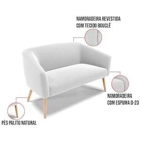 Tem novidades chegando por aqui! Olha só essa nossa inédita Namoradeira Stella Bouclê. Sim, as melhores opções em Namoradeira estão aqui! A Namoradeira Stella Bouclê é para todas as ocasiões, é ideal para você relaxar, assistir tv ou ler um livro, mantendo-o confortável ao longo do dia! Um estofado versátil, que foge do convencional pelo seu design e tecido luxuoso. Seu formato curvo, marcante e sofisticado, oferece conforto de forma excepcional, com aquela sensação de abraço, que deixa o coração quentinho! Desenvolvida com atenção aos detalhes, para atender todas suas expectativas e necessidades. Seu aspecto arredondado e anatômico, possibilita que a postura fique sempre alinhada, mantendo a coluna na posição correta. Ela dispõe de um acabamento impecável, revestida em Bouclê, um tecido maleável que além de ser muito bonito, é a grande tendência do momento, por ser uma lã mais refinada, quente, com toque suave e agradável, semelhante à textura natural da ovelha. Contém uma estrutura robusta, sua sustentação é dada pelos Pés Palito no tom Natural, que garantem mais segurança e firmeza ao sentar-se. Já o enchimento é feito em espuma D-23 no encosto e assento, garantindo maior conforto ao usuário. Ah! Vale a pena lembrar que a Namoradeira Stella Bouclê, foi produzida em quantidades limitadas, para aqueles que procuram criar um visual diferenciado e exclusivo. Então, não deixe de aproveitar esse lançamento, hem! Leve a sua agora mesmo. Dimensões do Produto: Altura Total: 80 cm Largura Total: 120 cm Profundidade Total: 63 cm Altura do Encosto: 39 cm Largura do Assento: 100 cm Profundidade do Assento: 45 cm Altura do chão ao Assento: 45 cm Espessura do Assento: 15 cm Espessura do braço: 13 cm Altura do chão ao braço: 70 cm Altura interna do braço: 25 cm Tamanho dos pés: 30 cm Peso: 24 kg Especificações do Produto: Estrutura: Madeira Eucalipto Espuma: D-23 Tecido: Bouclê Peso Suportado: Até 180 Kg Tipo de Pés: Pés Palito Natural Tipo de Encosto: Fixo Tipo de Assento: Fixo Complexidade da Montagem: Baixo Montagem: O produto vai montado, apenas rosquear os Pés Garantia: 90 dias contra defeito de fabricação Instruções de Limpeza: Utilizar um pano limpo e levemente úmido Você irá Receber: 01 Sofá Namoradeira - Entregue em: 01 Volume