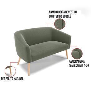Sofá Namoradeira 2 Lugares Pé Palito Natural Stella Bouclê D03 - D`Rossi - Verde Cinza