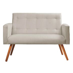 Sofá Namoradeira 2 Lugares Sabrina Veludo - Star Confort Bege Marfim
