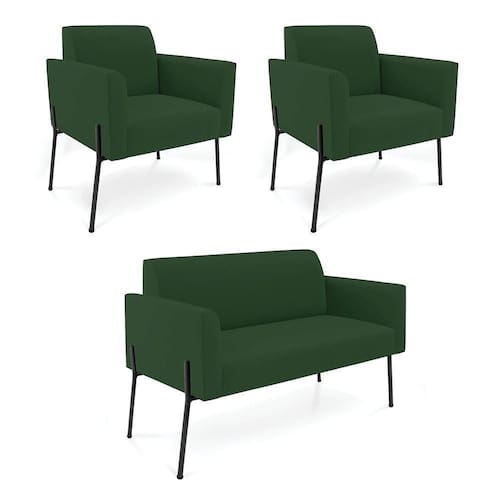 Sofá Namoradeira 2 Poltronas Pé De Ferro Preto Marisa Veludo D03 - D'rossi Cor Verde