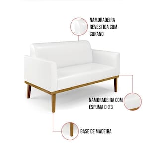 Sofá Namoradeira Base De Madeira Fixa Castanho Marisa Corano Branco D03 - D?rossi