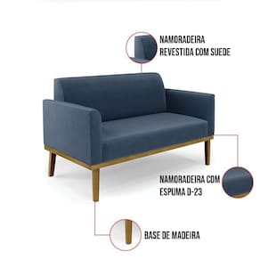 Sofá Namoradeira Base De Madeira Fixa Castanho Marisa Suede D03 - D?rossi Cor Azul Marinho