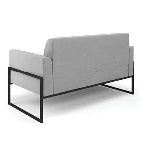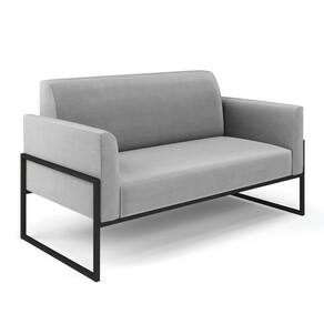 Sofá Namoradeira Base Industrial Alta Preto Marisa Suede D03 - D\\'rossi Cor Cinza