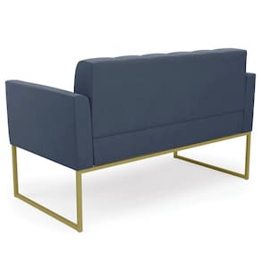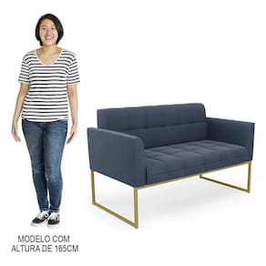 Querida por muitos pela beleza e conforto que proporciona, sua versatilidade dá a liberdade de poder usar na sua Sala De Estar, recepção e onde mais desejar! Você vai adorar o Sofá Namoradeira Base Industrial Dourado Ana Suede Azul Marinho, da Ibiza!