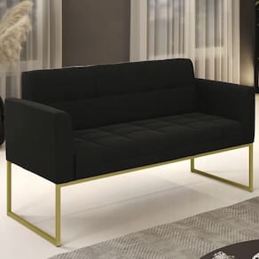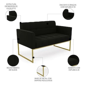Querida por muitos pela beleza e conforto que proporciona, sua versatilidade dá a liberdade de poder usar na sua Sala De Estar, recepção e onde mais desejar! Você vai adorar o Sofá Namoradeira Base Industrial Dourado Ana Suede Preto, da Ibiza!