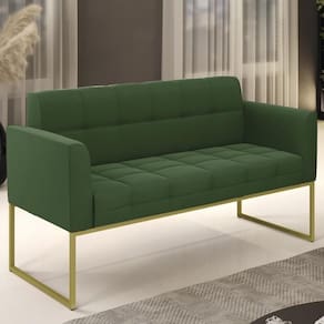 Querida por muitos pela beleza e conforto que proporciona, sua versatilidade dá a liberdade de poder usar na sua Sala De Estar, recepção e onde mais desejar! Você vai adorar o Sofá Namoradeira Base Industrial Dourado Ana Suede Verde, da Ibiza!