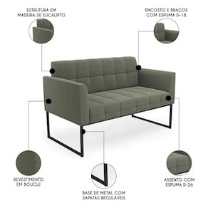Esta Namoradeira é revestida em bouclé, que é confortável, suave ao toque, e ainda valoriza o design do sofá. Os braços e encosto são confortáveis em espuma D-18, já o assento é com espuma D-26 de alta densidade, que garante um assento firme e aconchegante, ideal para relaxar após um dia cansativo. A base industrial é um charme à parte, que confere um toque Moderno e sofisticado à peça. O Sofá Namoradeira tem uma estrutura resistente e suporta até 120 kg. A montagem é muito simples, pois ela já vem pronta, bastando apenas fixar a base com os parafusos que acompanham o produto. A limpeza também é muito prática, pois basta utilizar um pano limpo e levemente úmido, sem produtos abrasivos, para manter a sua Namoradeira sempre em bom estado. Sem dúvidas essa Namoradeira 2 Lugares, vai transformar a sua sala em um ambiente mais confortável e estiloso!
