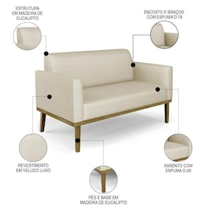 Sofá Namoradeira Base Madeira Castanho Maressa Veludo Luxo Off White - Ibiza