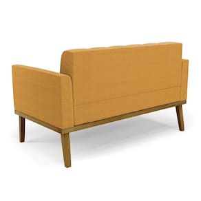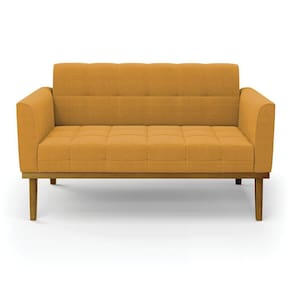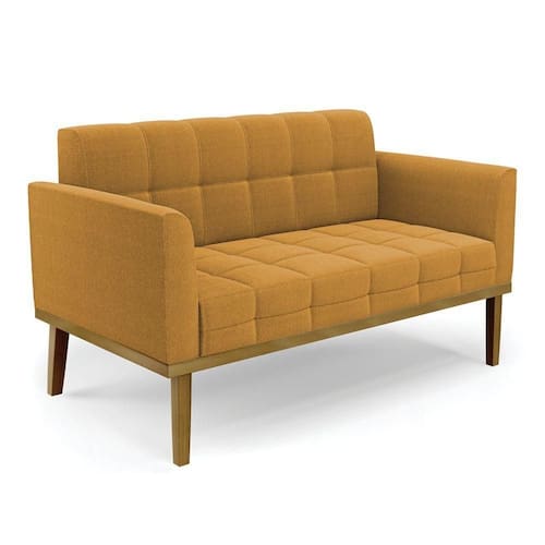 Sofá Namoradeira Base Madeira Fixa Castanho Elisa Bouclê D03 - D'rossi Cor Mostarda