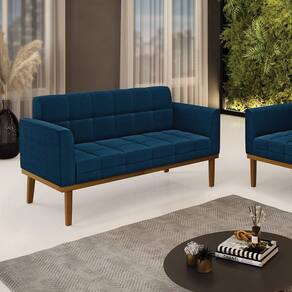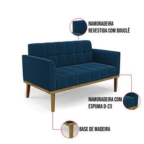 Sofá Namoradeira Base Madeira Fixa Castanho Elisa Bouclê D03 - D`Rossi - Azul