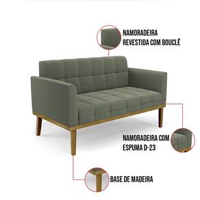 O Sofá Namoradeira 2 Lugares Elisa é uma mobília que combina elegância, conforto e durabilidade. Ele tem um design retrô e sofisticado, com Base de Madeira Fixa Castanho e revestimento em tecido Bouclê Menta, que harmonizam com qualquer ambiente. Ele é ideal para sala de estar, recepções, escritórios, cozinhas ou qualquer outro espaço que você queira decorar com estilo e bom gosto. Ele tem uma estrutura em madeira de reflorestamento eucalipto, que garante a resistência e a sustentabilidade do produto. Ele suporta até 180 kg de peso, podendo ser utilizada por pessoas de diferentes biotipos. Ele tem um acabamento reforçado e espuma de qualidade D23, que oferece maciez e aconchego. Ele contém detalhes de costura no encosto e assento, resultando em um acabamento impecável, conferindo muito mais valor e elegância ao produto. O Sofá Namoradeira Elisa é um móvel de alta qualidade, beleza e funcionalidade. Ele é fácil de transportar, pois tem um peso leve e um tamanho compacto. O Sofá Namoradeira Elisa é um produto que vai fazer a diferença na sua decoração e no seu bem-estar. Ele vai trazer charme, conforto e durabilidade para o seu ambiente. Aproveite essa oferta e leve para casa um Sofá Namoradeira de qualidade por um preço incrível. Essa é a sua chance de ter um Sofá Namoradeira maravilhoso por um preço imperdível. Corra e garanta o seu antes que acabe o estoque!