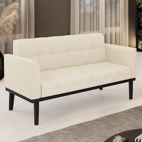 Querida por muitos pela beleza e conforto que proporciona, sua versatilidade dá a liberdade de poder usar na sua Sala De Estar, recepção e onde mais desejar! Você vai adorar o Sofá Namoradeira Base Madeira Preto Ana Linho Bege, da Ibiza!