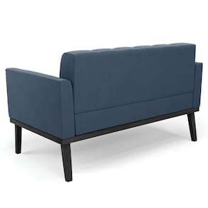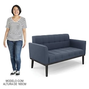 Sofá Namoradeira Base Madeira Preto Ana Suede Azul Marinho