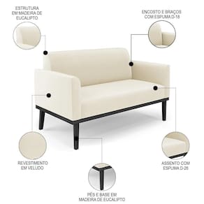 Esta Namoradeira é revestida em Veludo, que é durável e fácil de limpar, e ainda valoriza o design do sofá. Os braços e encosto são confortáveis em espuma D-18, já o assento é com espuma D-26 de alta densidade, que garante um assento firme e aconchegante, ideal para relaxar após um dia cansativo. A base em madeira de eucalipto é um charme à parte, que confere um toque Rústico e sofisticado à peça. O Sofá Namoradeira tem uma estrutura resistente e suporta até 120 kg. A montagem é muito simples, pois ela já vem pronta, bastando apenas fixar a base com os parafusos que acompanham o produto. A limpeza também é muito prática, pois basta utilizar um pano limpo e levemente úmido, sem produtos abrasivos, para manter a sua Namoradeira sempre em bom estado. Sem dúvidas essa Namoradeira 2 Lugares, vai transformar a sua sala em um ambiente mais confortável e estiloso!