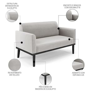 Querida por muitos pela beleza e conforto que proporciona, sua versatilidade dá a liberdade de poder usar na sua Sala De Estar, recepção e onde mais desejar! Você vai adorar o Sofá Namoradeira Base Madeira Preto Maressa Veludo Cinza, da Ibiza!