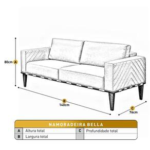 Características: Sofá Namoradeira Marca: Castellar Móbile Modelo: Bella Estrutura: Madeira Maciça Densidade da Espuma: D26 SOFT Material da Almofada: Fibra Siliconada Tipo de Tecido: Material Sintético