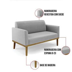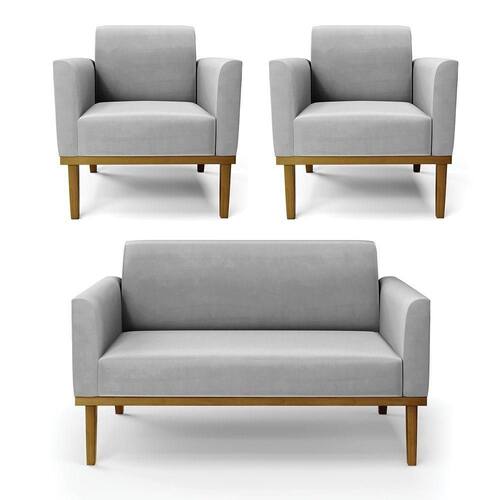 Sofá Namoradeira Com 2 Poltronas Base De Madeira Fixa Castanho Marisa Suede Cinza D03 - D?rossi
