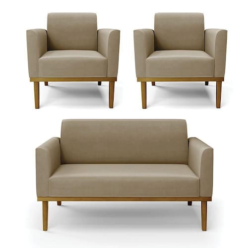 Sofá Namoradeira Com 2 Poltronas Base De Madeira Fixa Castanho Marisa Suede Marrom Rato D03 - D?rossi