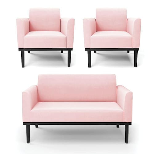 Sofá Namoradeira Com 2 Poltronas Base De Madeira Fixa Preto Marisa Suede D03 - D`Rossi Rosa Bebê - Blush