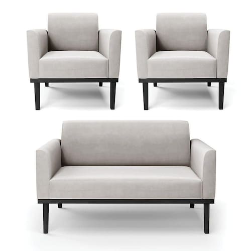 Você irá receber: 01 Sofá Namoradeira e 02 Poltronas - Entregue em: 03 Volumes