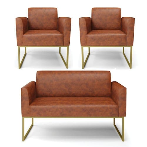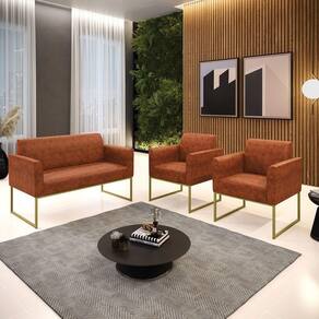 Você irá receber: 01 Sofá Namoradeira e 02 Poltronas - Entregue em: 03 Volumes