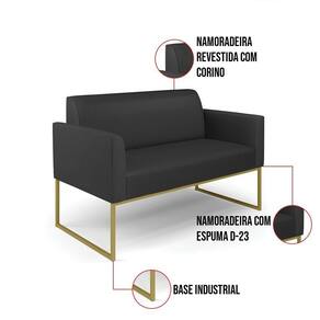 Todo mundo gosta de um ambiente bem decorado, e se for novidade melhor ainda não é mesmo? A D'Rossi, além de entregar beleza, qualidade e confiança aos clientes, ela dispõe das melhores opções em produtos, disponíveis no mercado! Se você quer um produto sofisticado, opte pelo Sofá Namoradeira Marisa. Ele dispõe de um tom lindo no Preto, uma cor leve, neutra e delicada que combina com qualquer estilo de decoração. Esta mobília fica perfeita na sala, escritório, quarto, varanda coberta e onde mais preferir! Sua estrutura é feita em madeira reforçada de eucalipto proveniente de reflorestamento. No assento/encosto contém um revestimento no tecido Corino, com estofamento em espuma prorelax D-23, garantindo maior conforto ao usuário. A sustentação da peça é dada pelos Base Industrial Dourado, garantindo uma resistência melhor, para relaxar o dia todo com mais comodidade. O Sofá Namoradeira Marisa é ideal, para dar aquele realce que seu ambiente precisa. Tenho certeza que, esse móvel é a melhor compra que você irá fazer. Garanta já seu Sofá Namoradeira com 2 Poltronas e se acomode da melhor maneira possível!