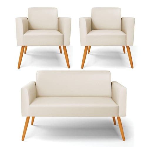 Sofá Namoradeira Com 2 Poltronas Pés Palito Castanho Marisa Corino Bege D03 - D`rossi - Blush