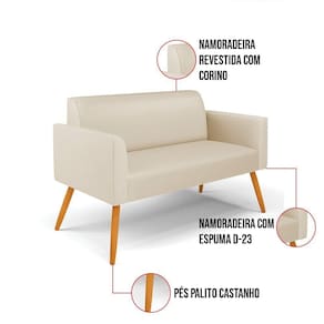 Todo mundo gosta de um ambiente bem decorado, e se for novidade melhor ainda não é mesmo? A D'Rossi, além de entregar beleza, qualidade e confiança aos clientes, ela dispõe das melhores opções em produtos, disponíveis no mercado! Se você quer um produto sofisticado, opte pelo Sofá Namoradeira Marisa. Ele dispõe de um tom lindo no Bege, uma cor leve, neutra e delicada que combina com qualquer estilo de decoração. Esta mobília fica perfeita na sala, escritório, quarto, varanda coberta e onde mais preferir! Sua estrutura é feita em madeira reforçada de eucalipto proveniente de reflorestamento. No assento/encosto contém um revestimento no tecido Corino, com estofamento em espuma prorelax D-23, garantindo maior conforto ao usuário. A sustentação da peça é dada pelos Pés Palito Castanho, garantindo uma resistência melhor, para relaxar o dia todo com mais comodidade. O Sofá Namoradeira Marisa é ideal, para dar aquele realce que seu ambiente precisa. Tenho certeza que, esse móvel é a melhor compra que você irá fazer. Garanta já seu Sofá Namoradeira e se acomode da melhor maneira possível!
