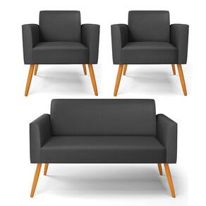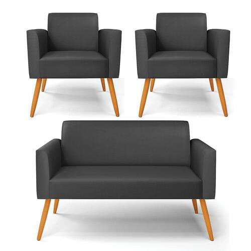 Você irá receber: 01 Sofá Namoradeira e 02 Poltronas - Entregue em: 03 Volumes
