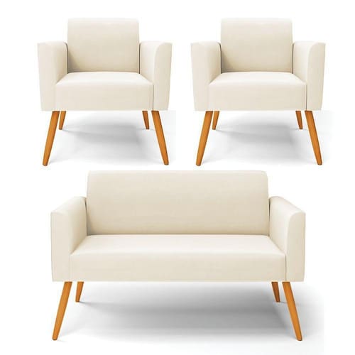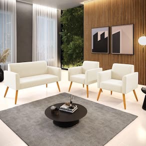 Você irá receber: 01 Sofá Namoradeira e 02 Poltronas - Entregue em: 03 Volumes