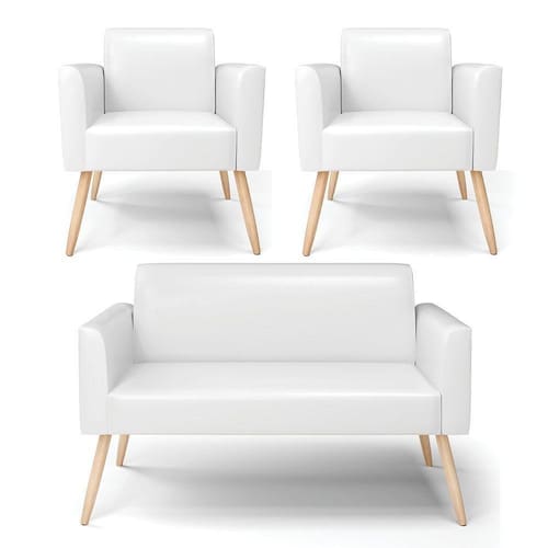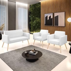 Você irá receber: 01 Sofá Namoradeira e 02 Poltronas - Entregue em: 03 Volumes