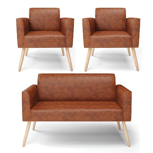Você irá receber: 01 Sofá Namoradeira e 02 Poltronas - Entregue em: 03 Volumes