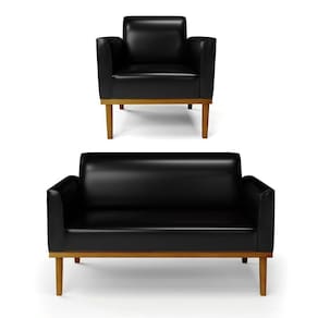 Sofá Namoradeira Com Poltrona Base De Madeira Fixa Castanho Marisa Corano D03 - D?rossi Cor Preto
