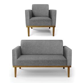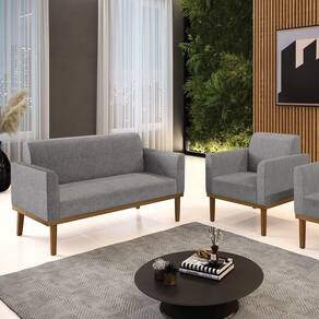 Sofá Namoradeira Com Poltrona Base De Madeira Fixa Castanho Marisa Linho D03 - D?rossi Cor A26 Grafite